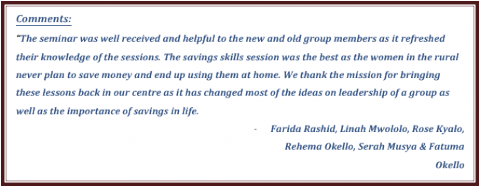 Bilal Muslim Mission of Kenya in August 2014 conducted a combined Module 1 training for all new members in Zainabiyya Women Group-Masongaleni, Rahma Women Group – Kilungu and Masumin Women Group – Nzavoni in Ukambani area. The module was held for 5 days where sessions on group mobilization, leadership and savings skills were held and it was facilitated by the head trainer Sis Sidi Nyota and assisted by Sis Kauchi Chifui. |